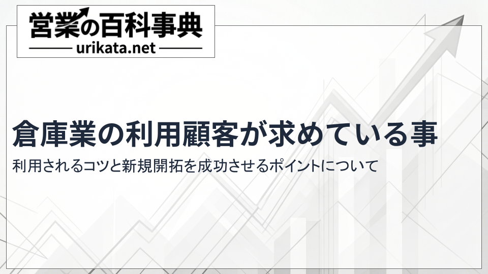 はじめに 競合の多い倉庫業界において、ただ待つだけの営業では「空きスペースを埋めたい」「新規荷主を獲得したい」という目標の達成は困難です。 本記事では、荷主が倉庫に求める「リアルなニーズ」を紐解き、顧客から継続して選ばれ