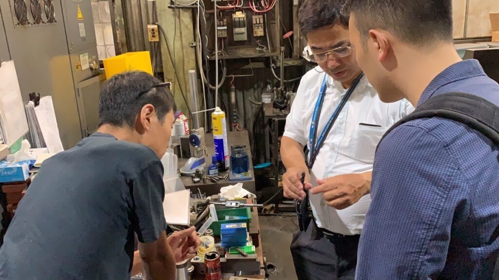 僕の会社は設立は昭和29年。65年ぐらいですね。でも、元々は産業用の機械を、まぁ図面をいただいて作っていたり、設計製作をしていたんですけど、今まぁ、そういう物が随分と変わって、うちで独自に作っているものが、まぁ少なくなっているという事ですね。